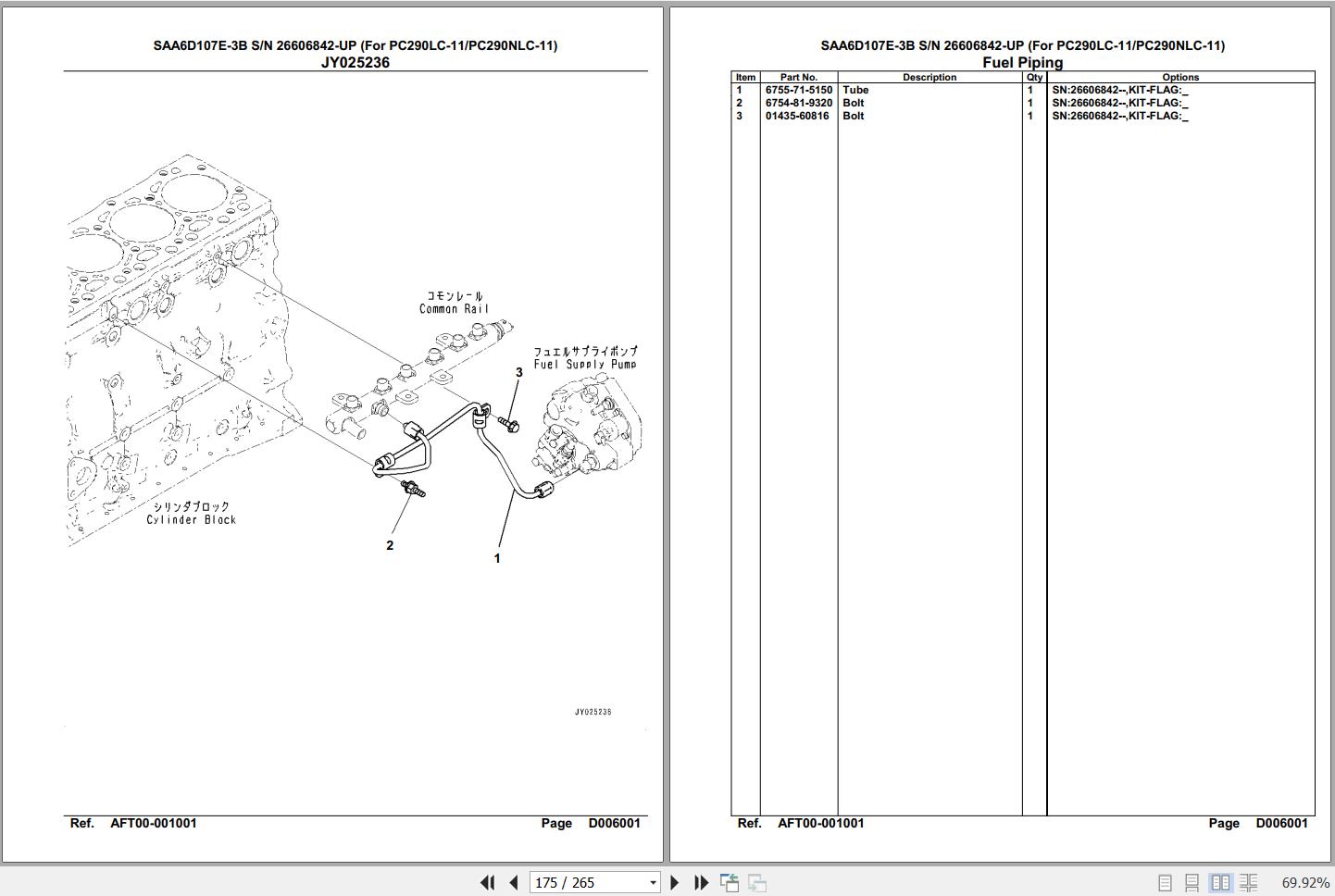 Komatsu Engine SAA6D107E-3B 26606842 Up For PC290LC 290NCL-11 Spare Parts Catalog