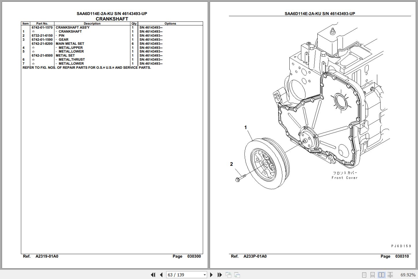 Komatsu Engine SAA6D114E-2A-KU 46143493 Up Spare Parts Catalog