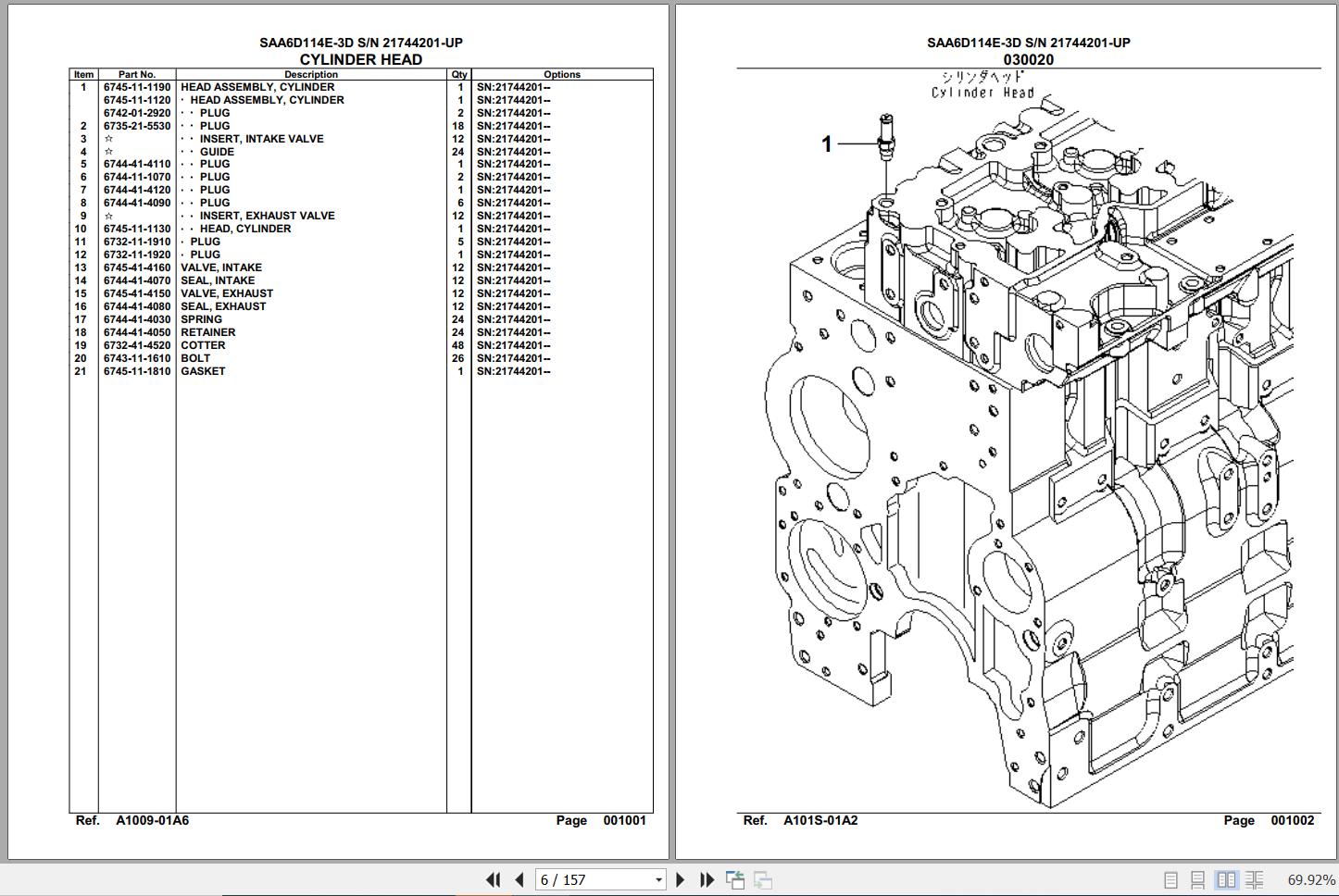 Komatsu Engine SAA6D114E-3D 21744201 Up Spare Parts Catalog