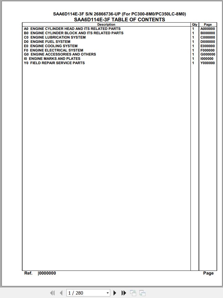 The Bookmarks of Komatsu Engine SAA6D114E-3F 26866736 Up For PC300 350LC-8M0 Spare Parts Catalog: