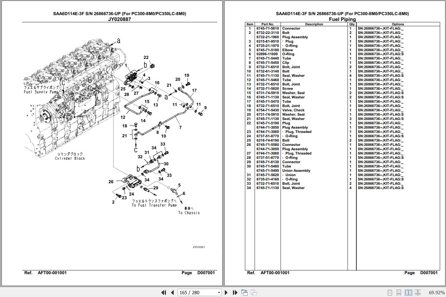Komatsu Engine SAA6D114E-3F 26866736 Up For PC300 350LC-8M0 Spare Parts Catalog
