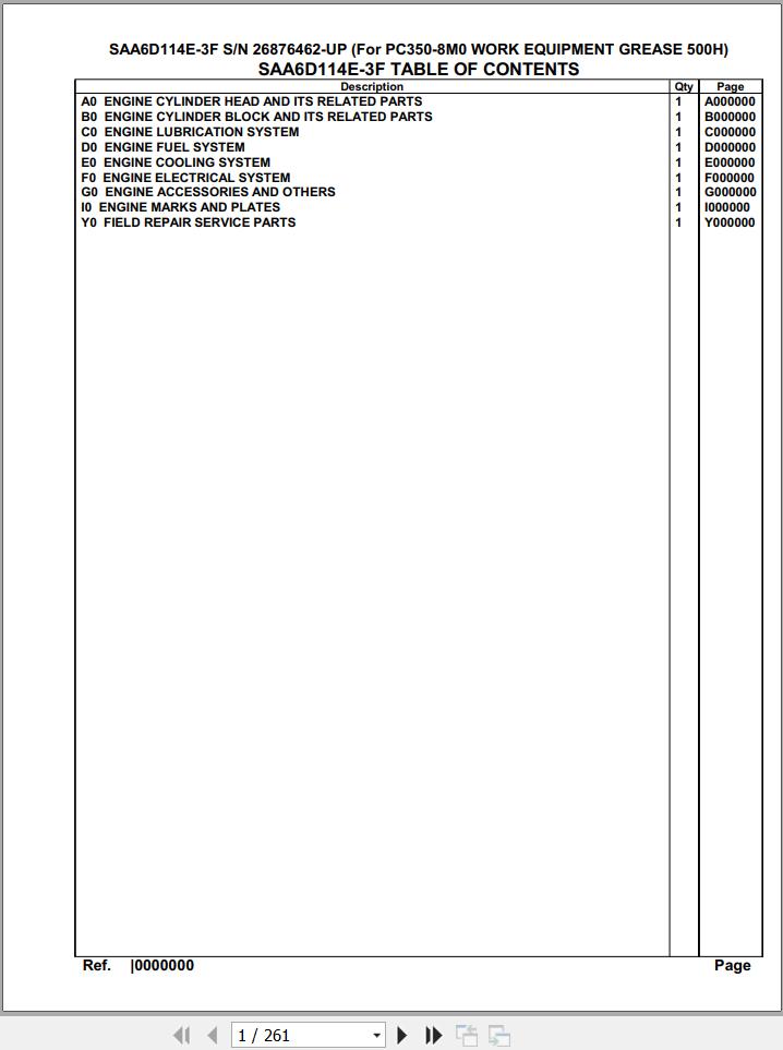 The Bookmarks of Komatsu Engine SAA6D114E-3F 26876462 Up For PC350NLC-8M0 Spare Parts Catalog: