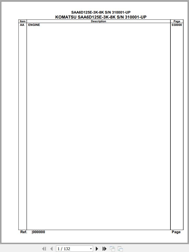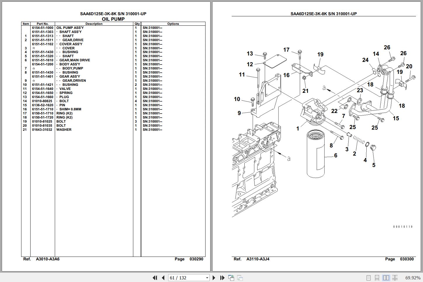 Komatsu Engine SAA6D125E-3K-8K 310001 Up Spare Parts Catalog