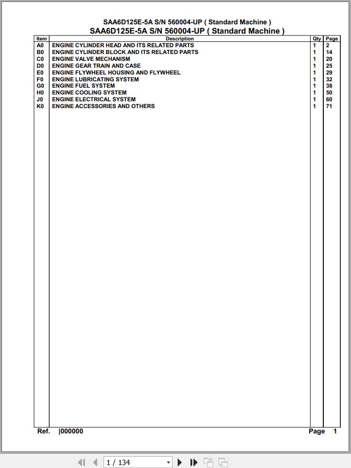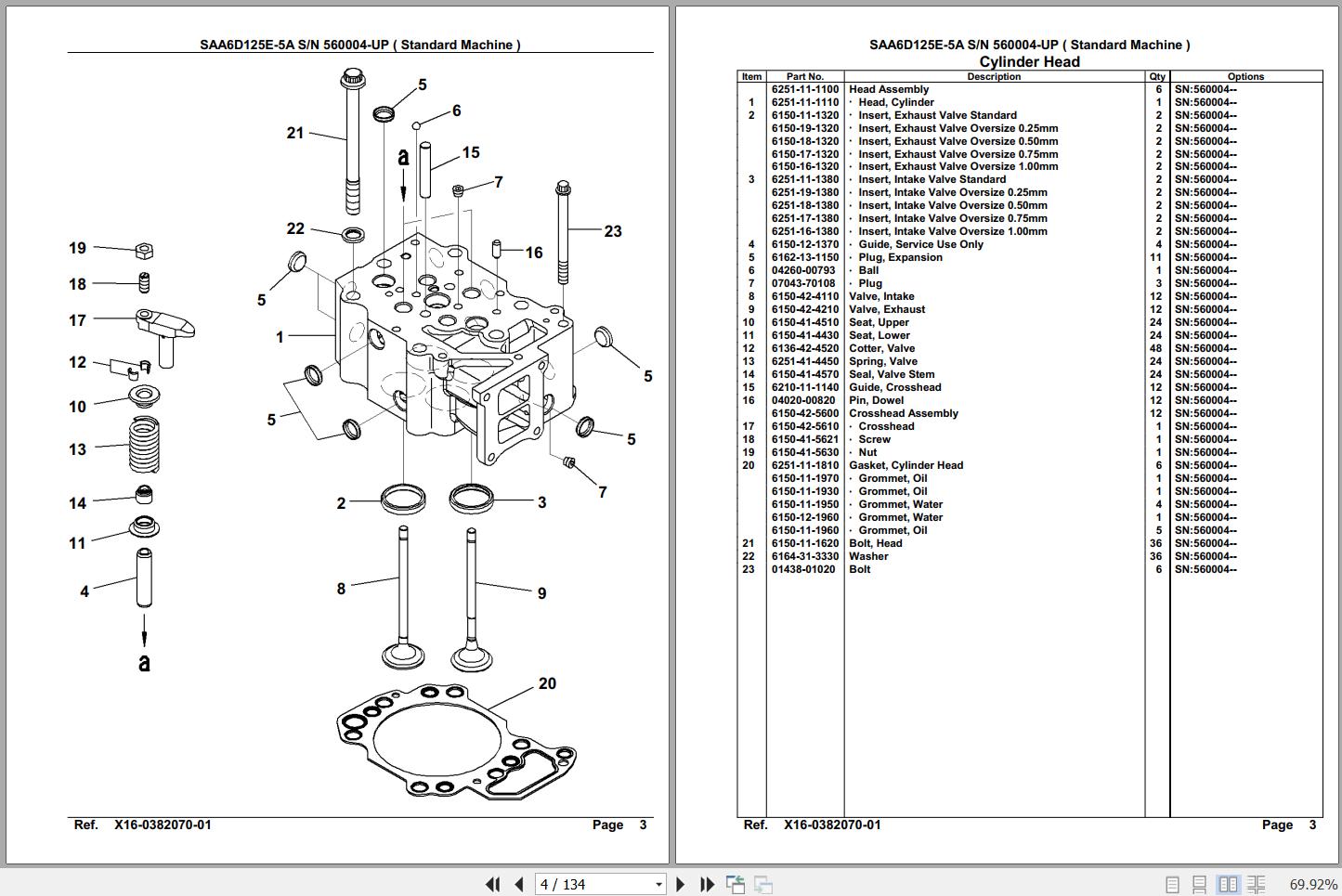 Komatsu Engine SAA6D125E-5A 560004 Up Spare Parts Catalog