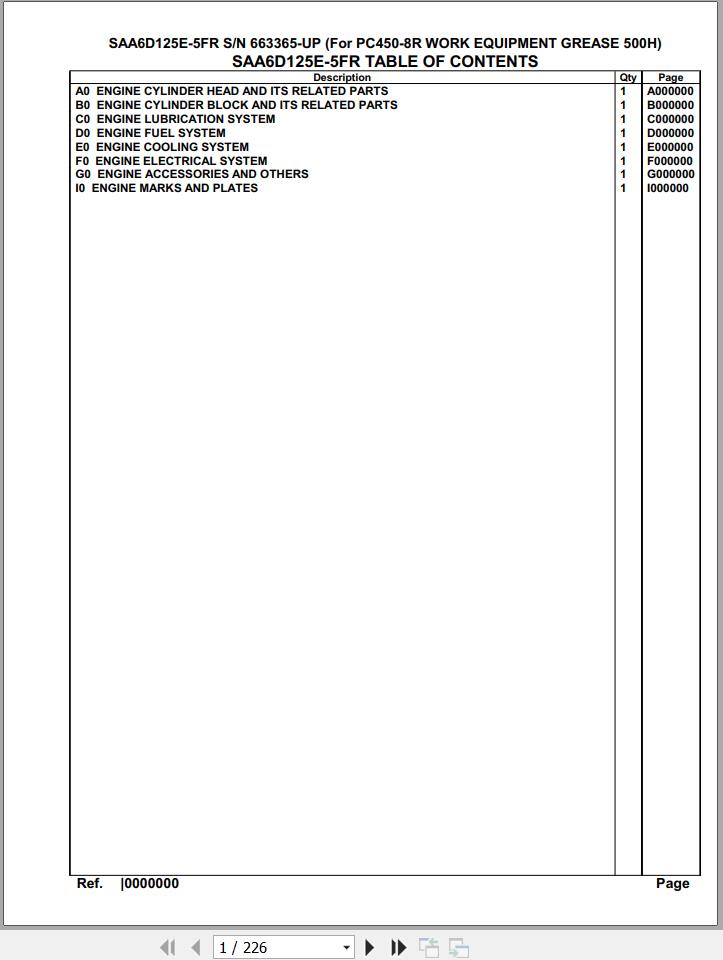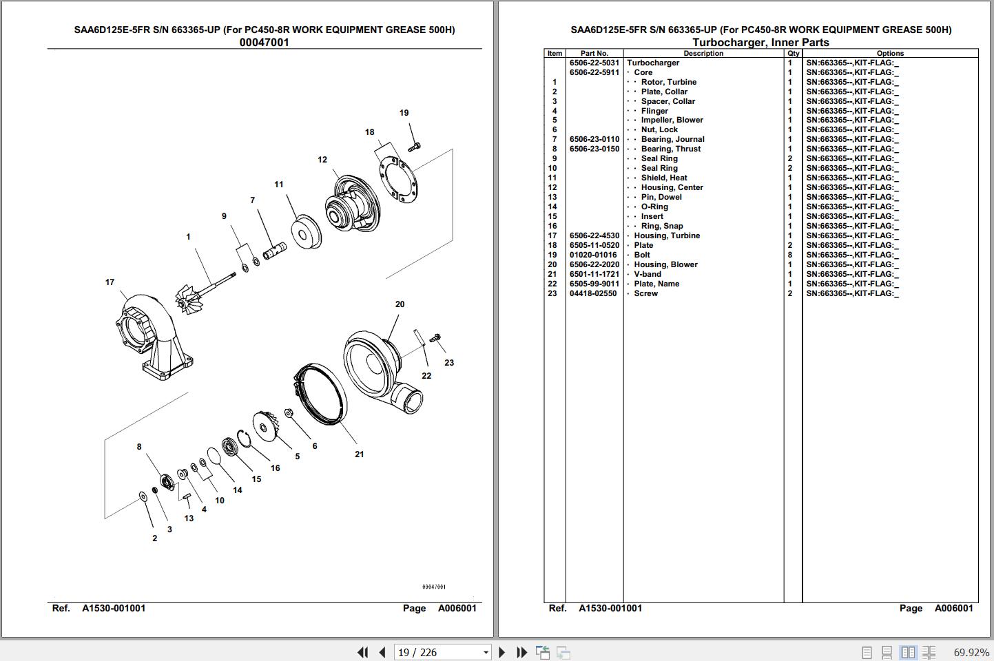 The Bookmarks of Komatsu Engine SAA6D125E-5FR 663365 Up For PC450-8R Spare Parts Catalog: