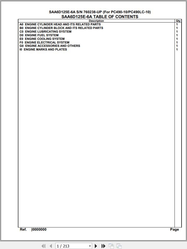 The Bookmarks of Komatsu Engine SAA6D125E-6A 760238 Up For PC490 490LC-10 Spare Parts Catalog: