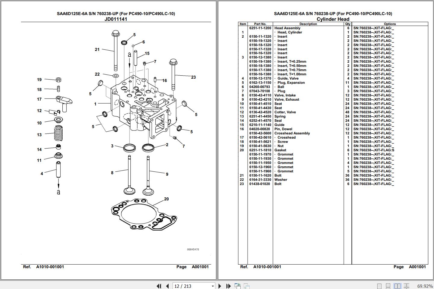 Komatsu Engine SAA6D125E-6A 760238 Up For PC490 490LC-10 Spare Parts Catalog