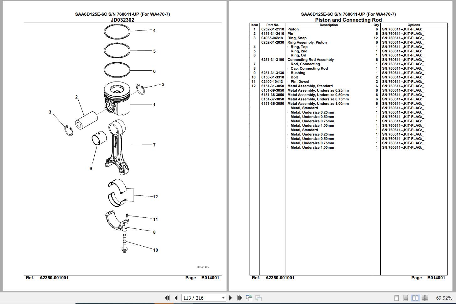 Komatsu Engine SAA6D125E-6C 760611 Up For WA470-7 Spare Parts Catalog