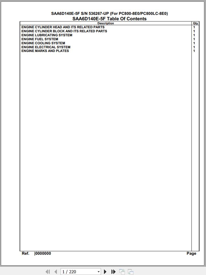 The Bookmarks of Komatsu Engine SAA6D140E-5F 536267 Up For PC800 800LC-8E0 Spare Parts Catalog: