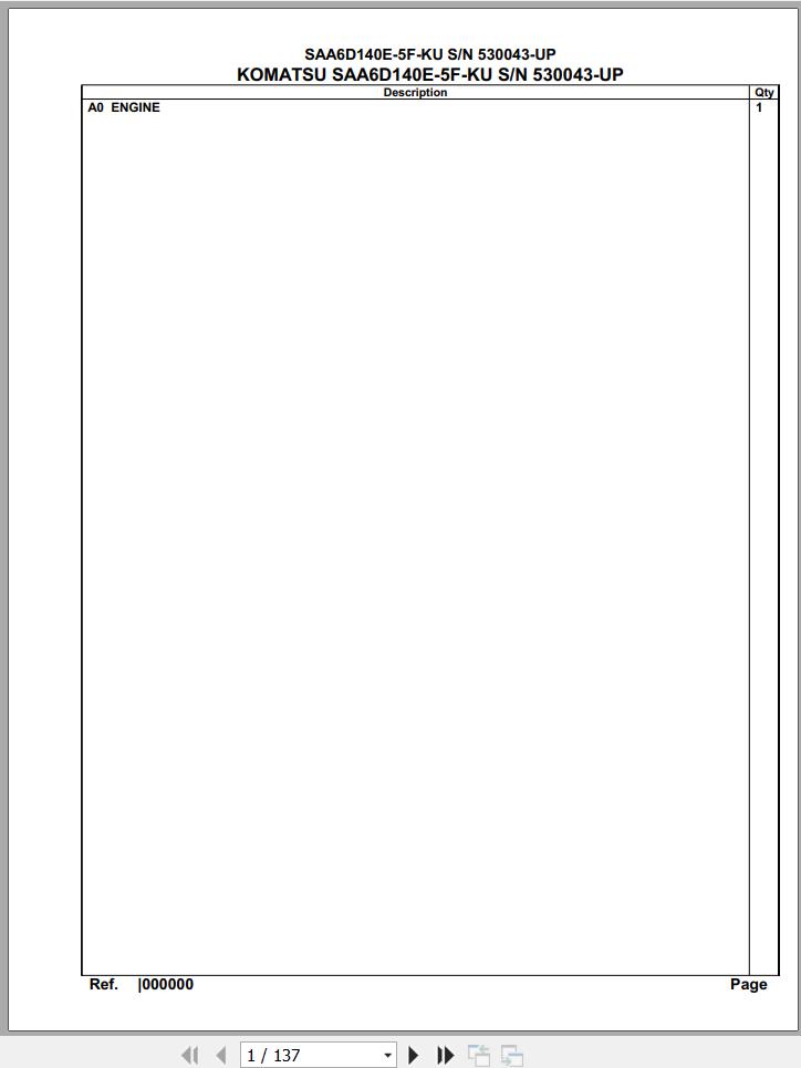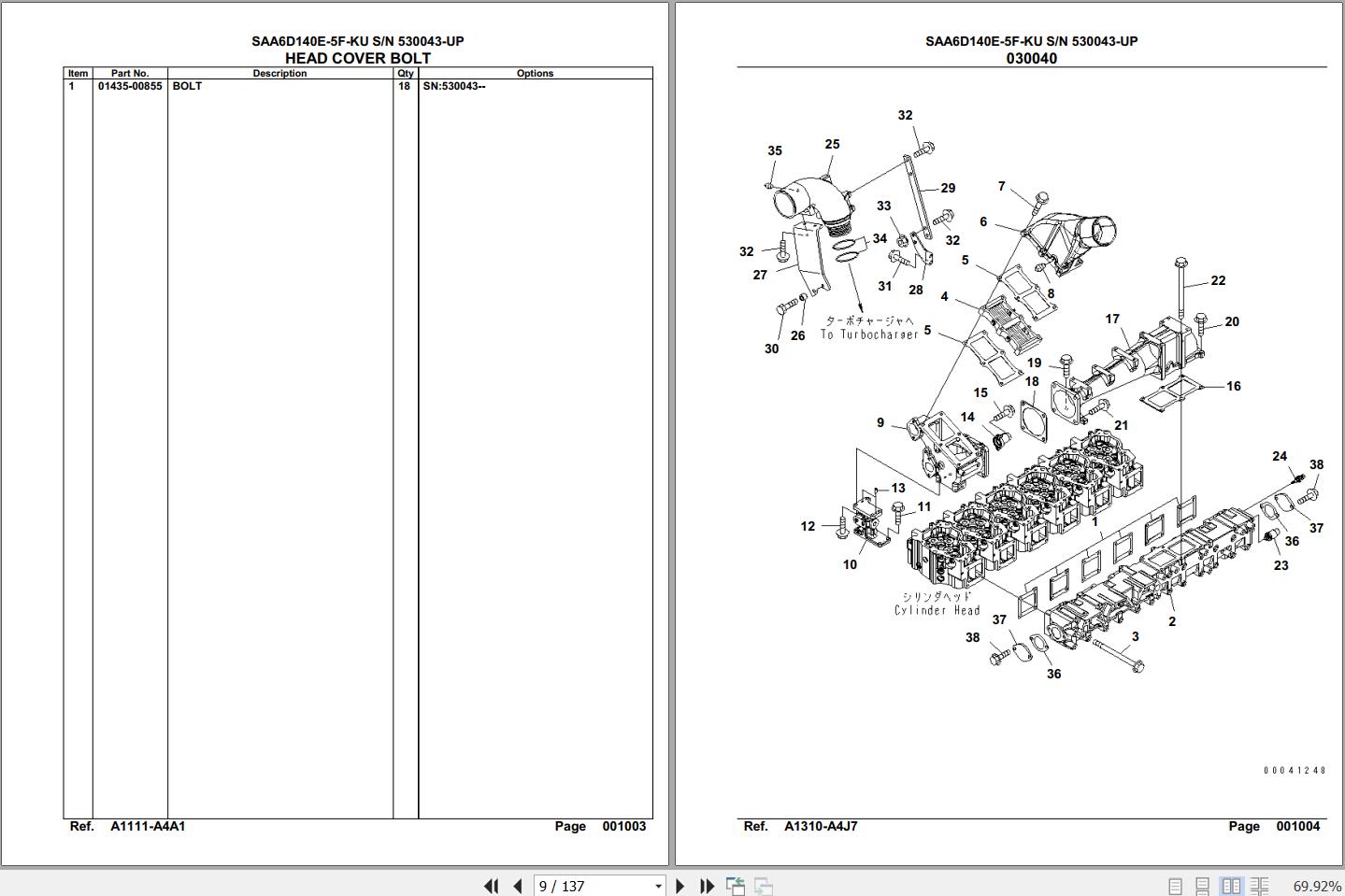 Komatsu Engine SAA6D140E-5F-KU 530043 Up Spare Parts Catalog