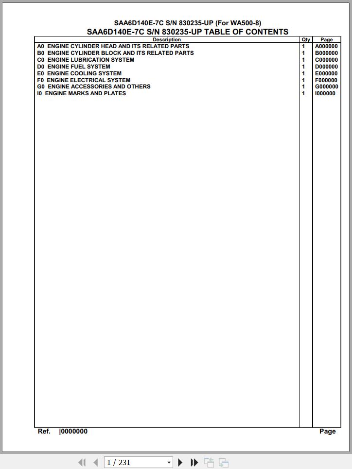 The Bookmarks of Komatsu Engine SAA6D140E-7C 830235 Up For WA500-8 Spare Parts Catalog: