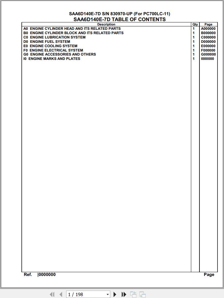 The Bookmarks of Komatsu Engine SAA6D140E-7D 830970 Up For PC700LC-11 Spare Parts Catalog: