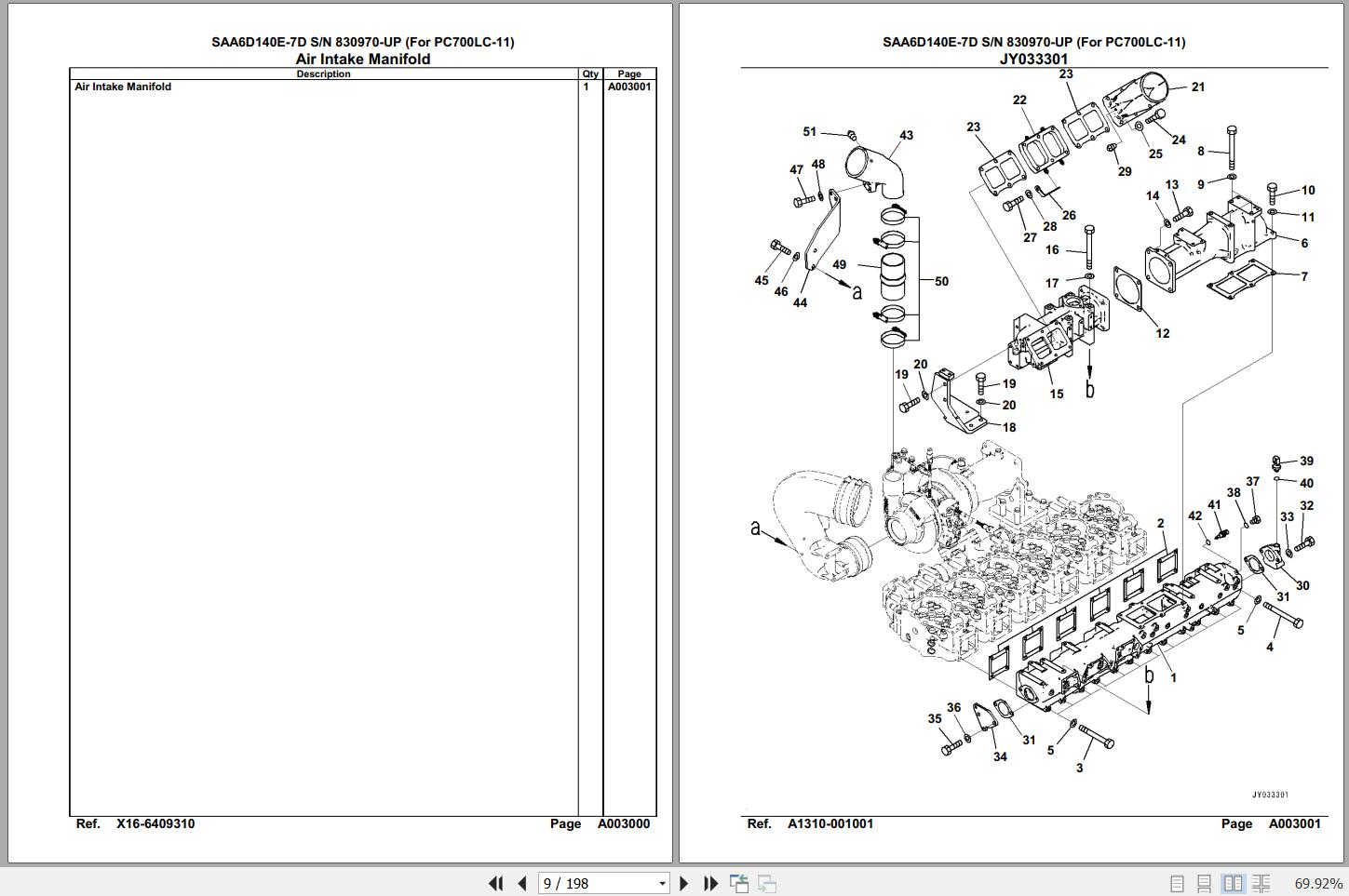 Komatsu Engine SAA6D140E-7D 830970 Up For PC700LC-11 Spare Parts Catalog