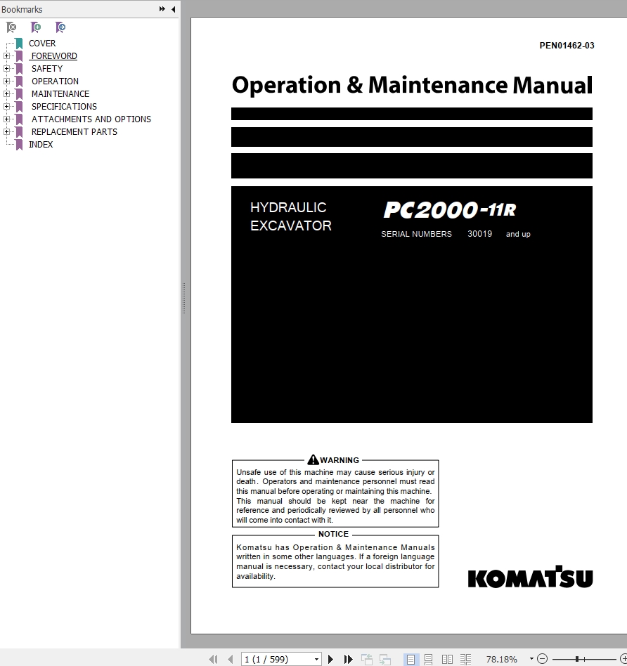 Komatsu PC2000-11R Operation & Maintenance Manual PEN01462-03