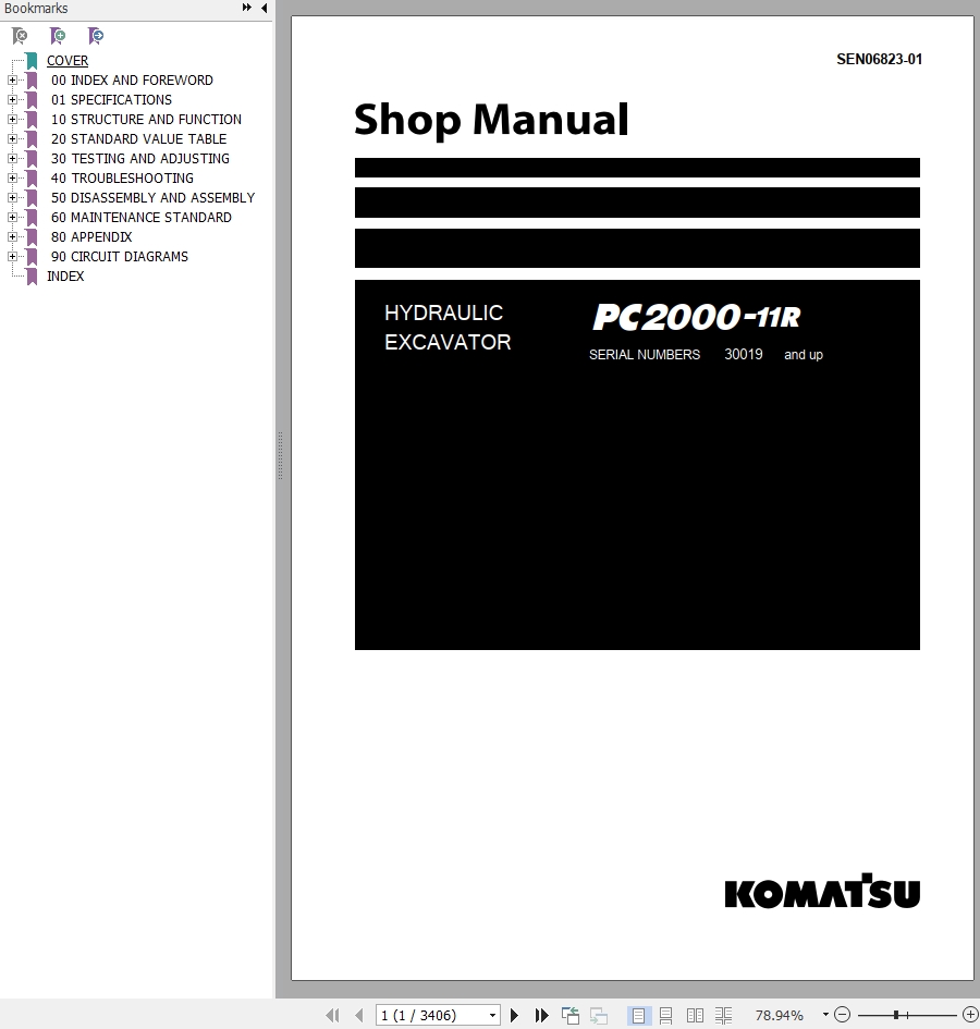 The Bookmarks of Komatsu PC2000-11R Hydraulic Excavator Shop Manual: