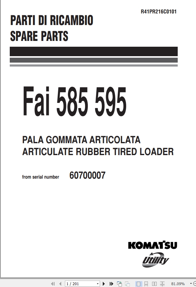 Komatsu Fai 585 595 60700007 Part Book R41PR216C0101