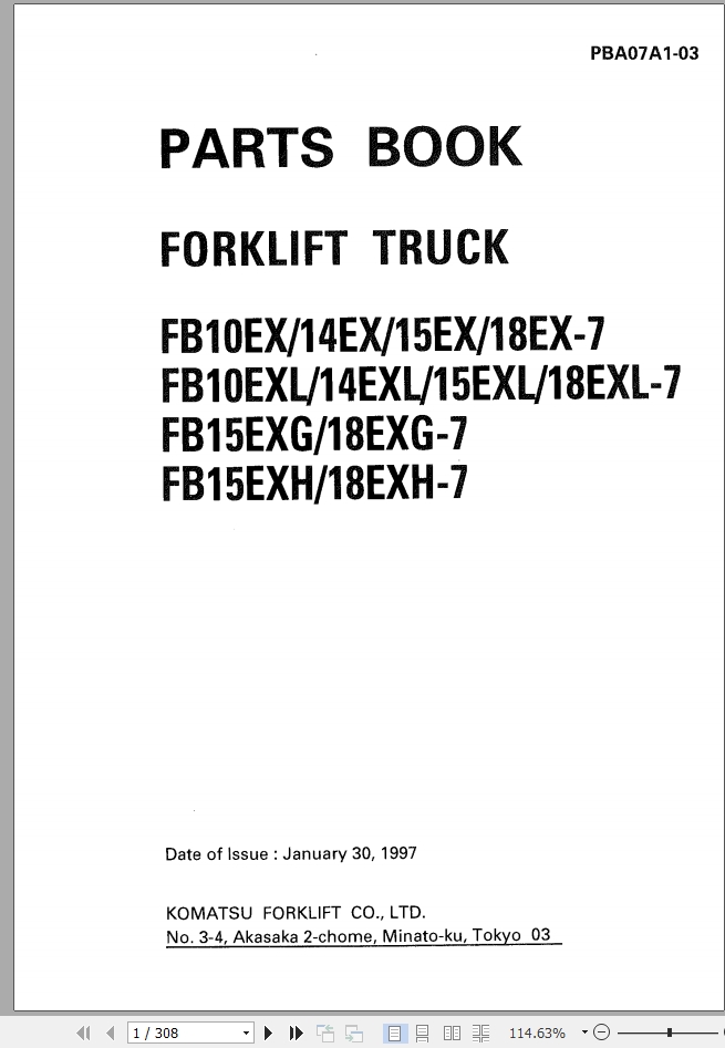 Komatsu FB10EX-7 FB18EXH-7 Part Book PBA07A1-03