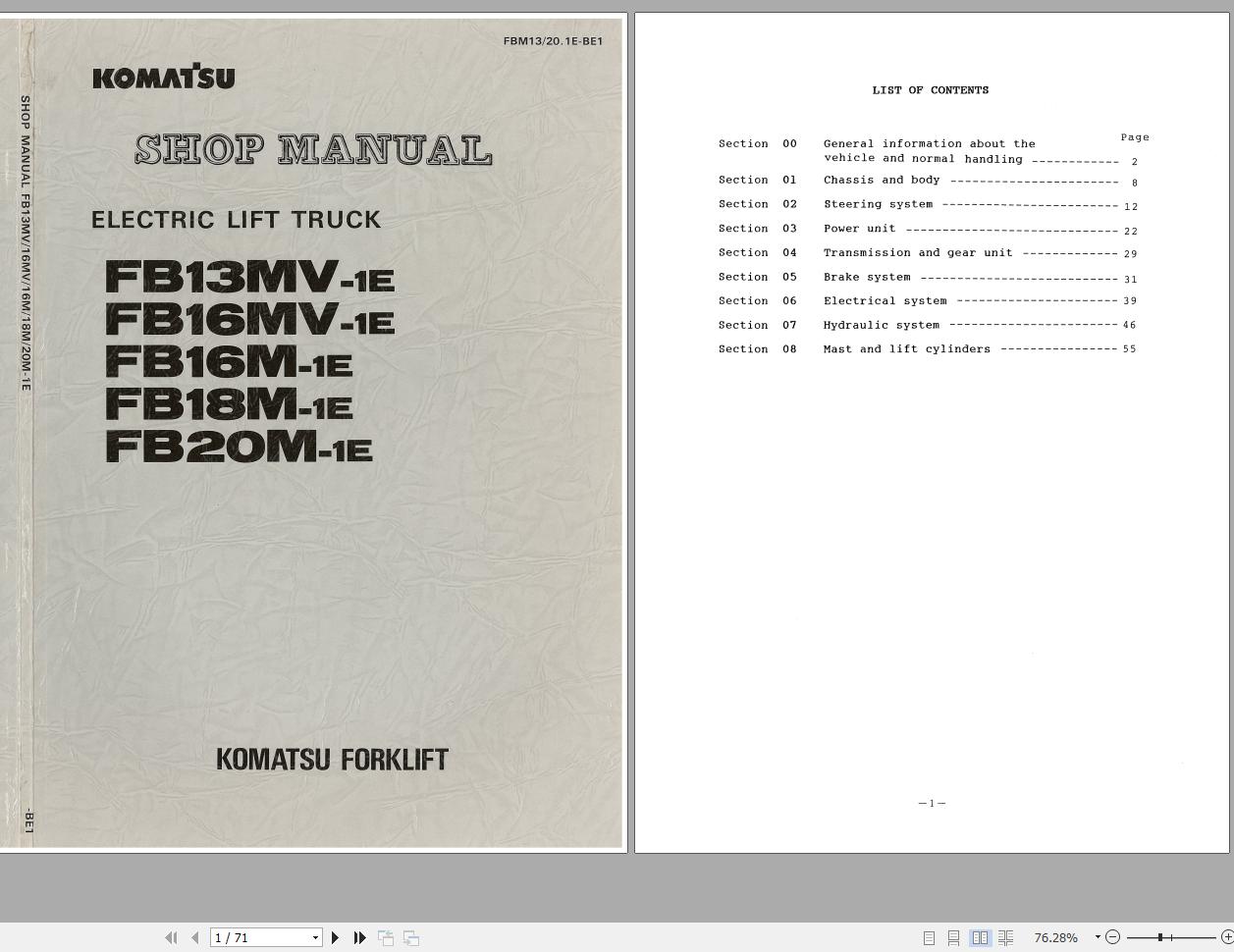 Komatsu FB16MV-1E Shop Manual FBM13-20.1E-BE1