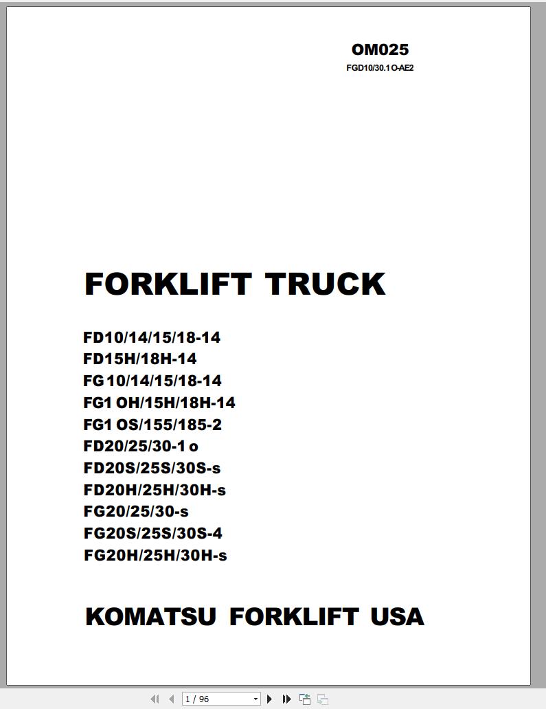 Komatsu FD15H-14 Operation & Maintenance Manual OM025