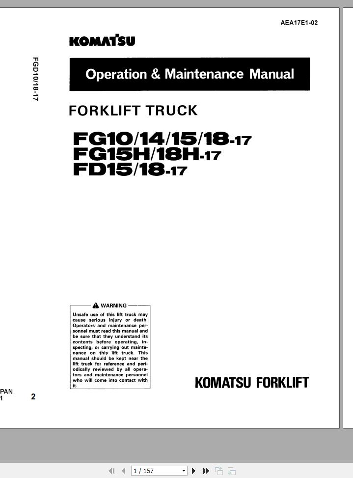 Komatsu FD18-17 Operation & Maintenance Manual AEA17E1-02