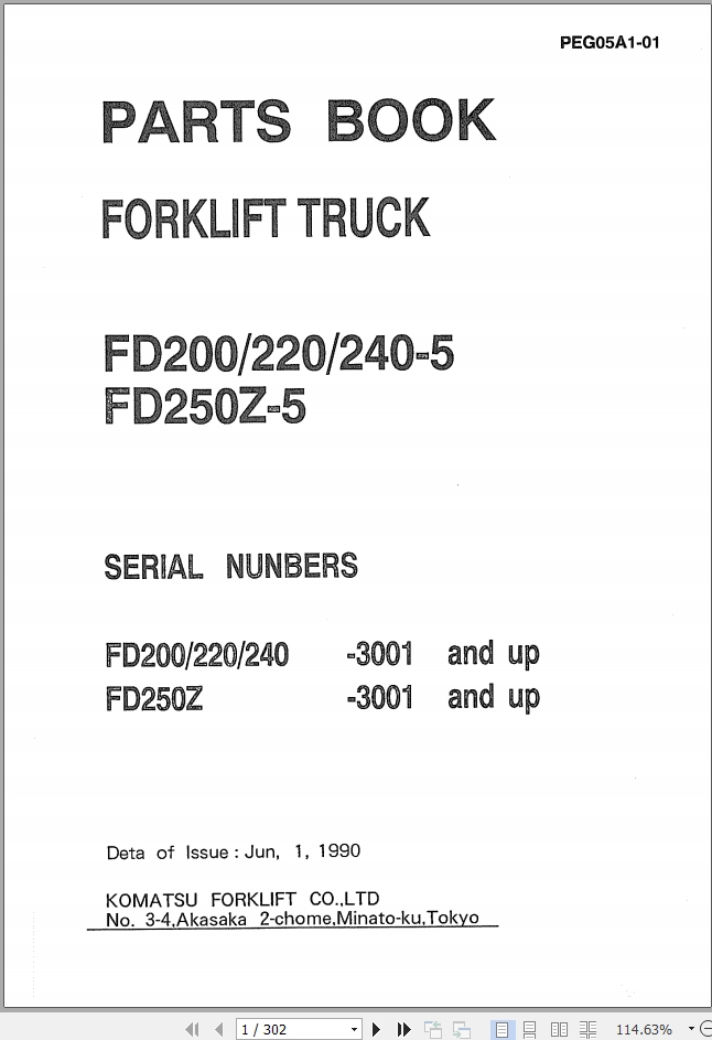 Komatsu FD200-5 FD220-5 FD240-5 FD250Z-5 Part Book PEG05A1-01