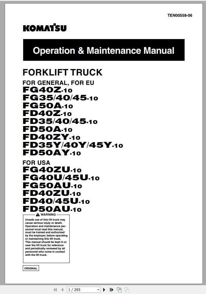 Komatsu FD50AY-10 Operation & Maintenance Manual TEN00558-06