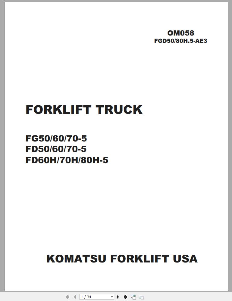 Komatsu FD60T-5 Operation & Maintenance Manual OM058