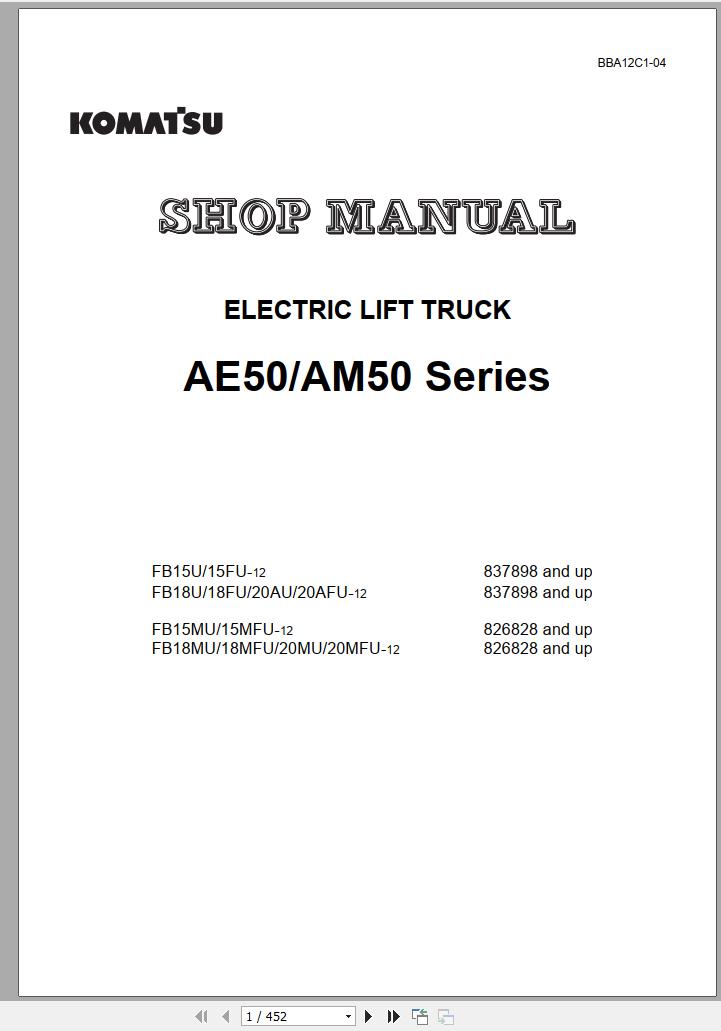 Komatsu FFB20AFU-12 Shop Manual BBA12C1-04