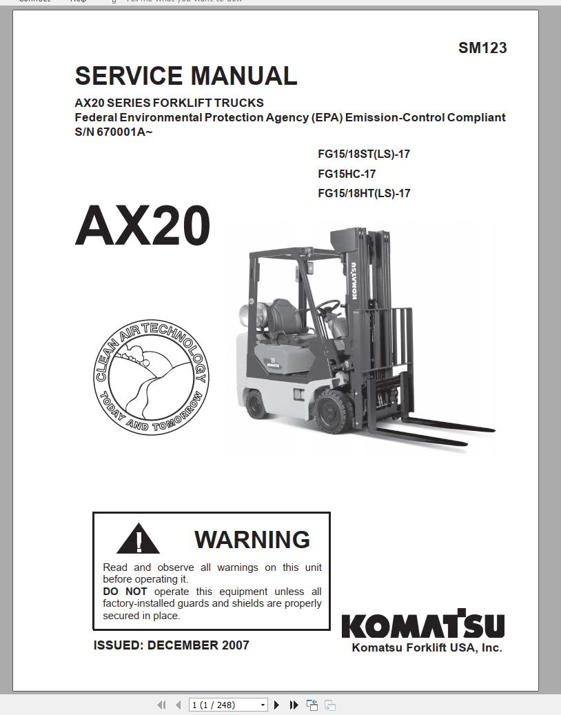 Komatsu FG15-17 FG18ST-17 FG15HC-17 FG15HT-17 FG18HT-17 Service Manual SM123