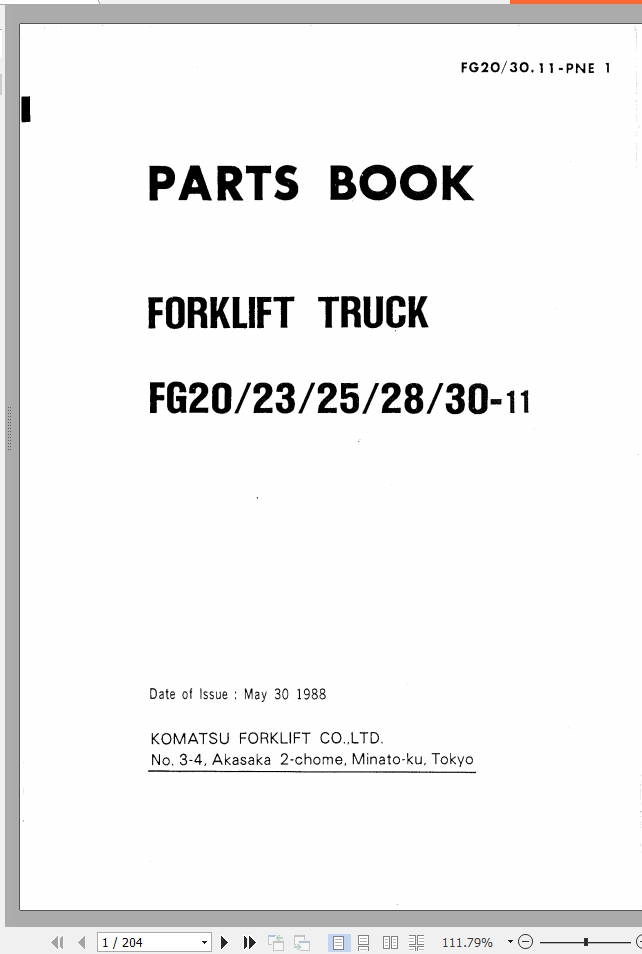 Komatsu FG20-11 FG23-11 FG28-11 FG30-11 Part Book FG20_30-11-PNE1