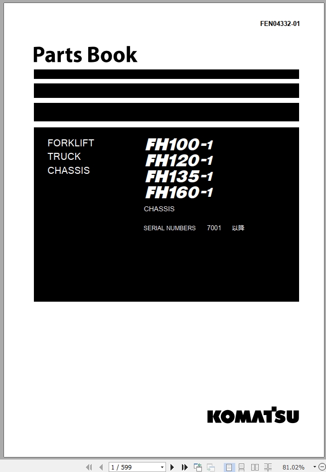 Komatsu FH100-1 FH120-1 FH135-1 FH160-1 Part Book FEN04332-01