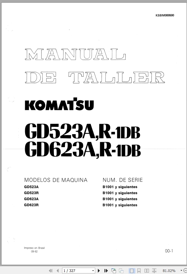Komatsu GD523A-1DB GD623A-1DB GD523R-1DB GD623R-1DB Shop Manual KSBM000500
