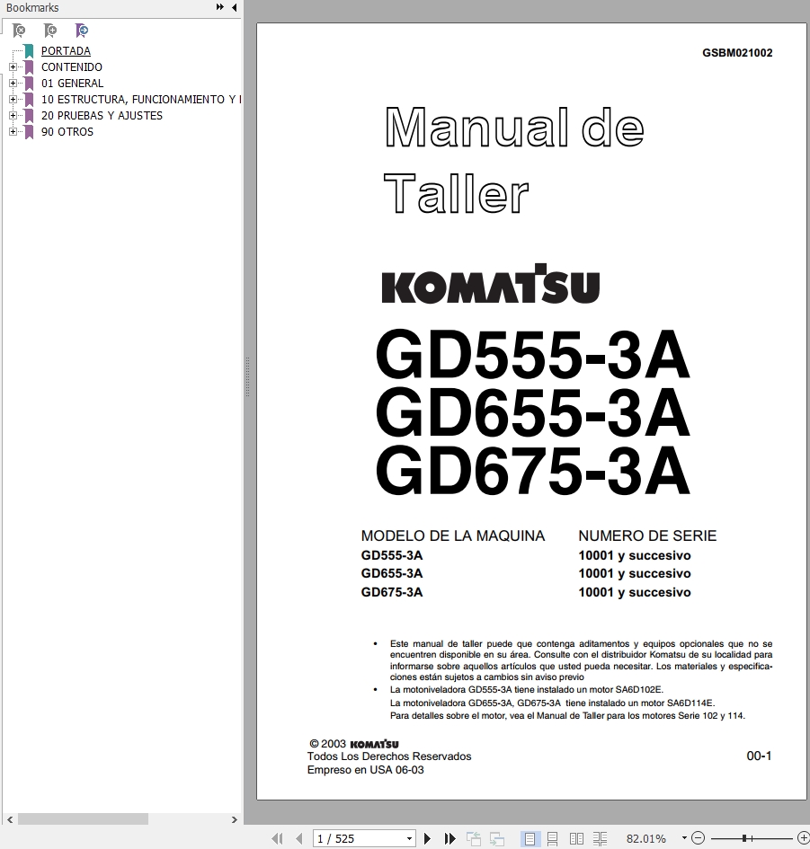 The Bookmarks of Komatsu GD555-3A GD655-3A GD675-3A Motoniveladoras Manual de Taller:
