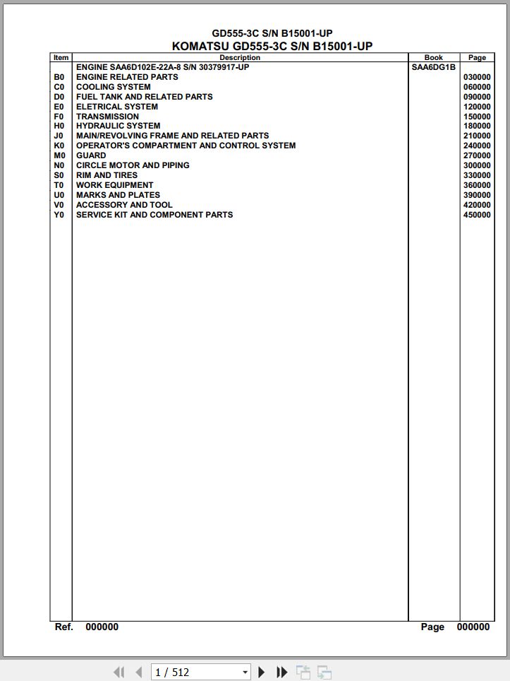 The Bookmarks of Komatsu GD555-3C B15001 Up Spare Parts Catalog: