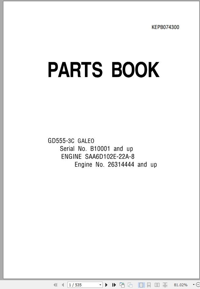 Komatsu GD555-3C Part Book KEPB074300D