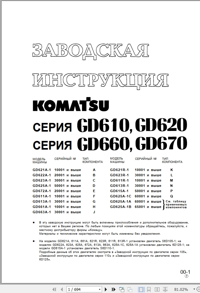 Komatsu GD610 GD620 GD660 GD670 Shop Manual