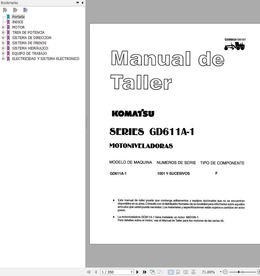 The Bookmarks of Komatsu GD611A-1 Motoniveladoras Manual de Taller: