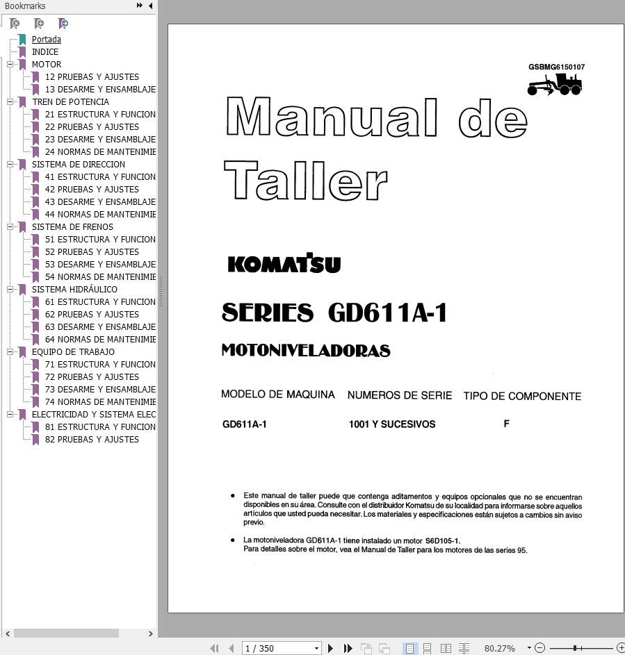 The Bookmarks of Komatsu GD611A-1 Motor Grader Shop Manual: