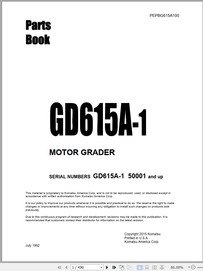 Komatsu GD615A-1 Part Book PEPBG615A100
