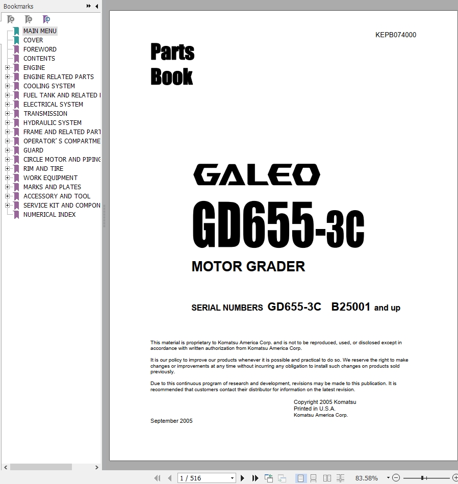 The Bookmarks of Komatsu GD655-3C Motor Graders Part Book :