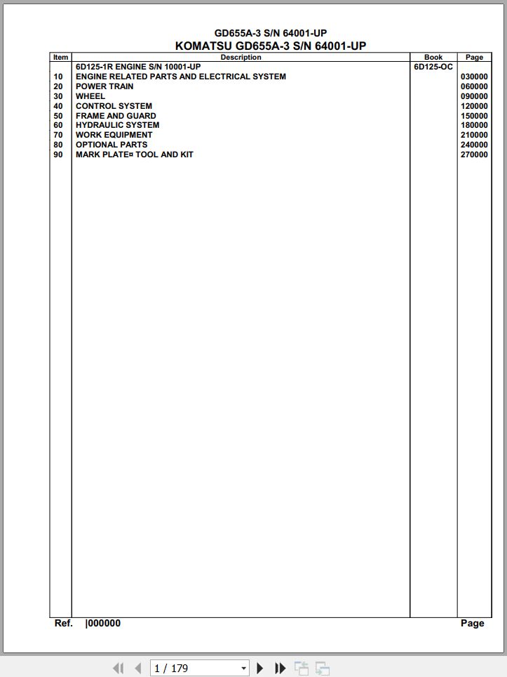 The Bookmarks of Komatsu GD655A-3 64001 Up Spare Parts Catalog: