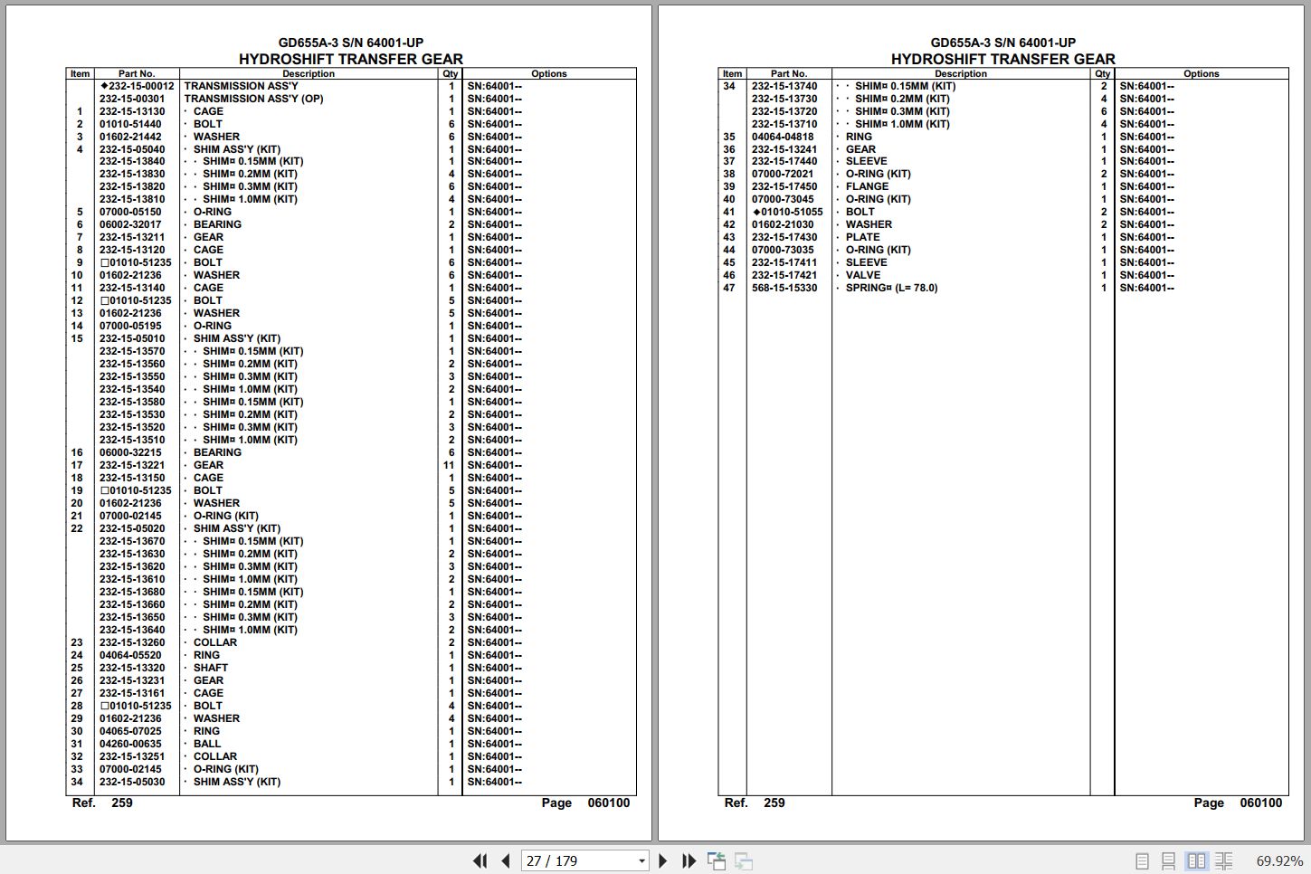 Komatsu GD655A-3 64001 Up Spare Parts Catalog