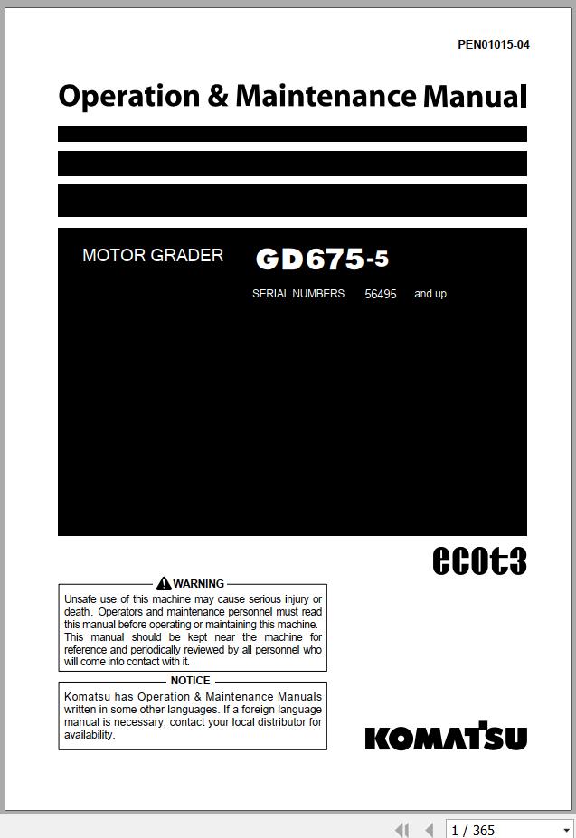 Komatsu GD675-5 Operation & Maintenance Manual PEN01015-04