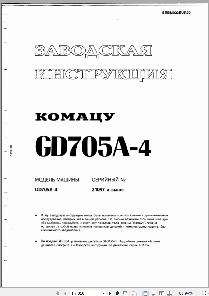 Komatsu GD705A-4 Shop Manual SRBM023RUR00