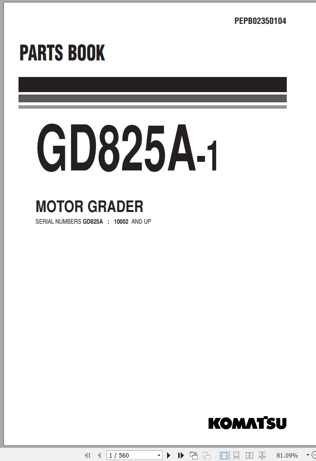 Komatsu GD825A-1 Part Book PEPB02350104