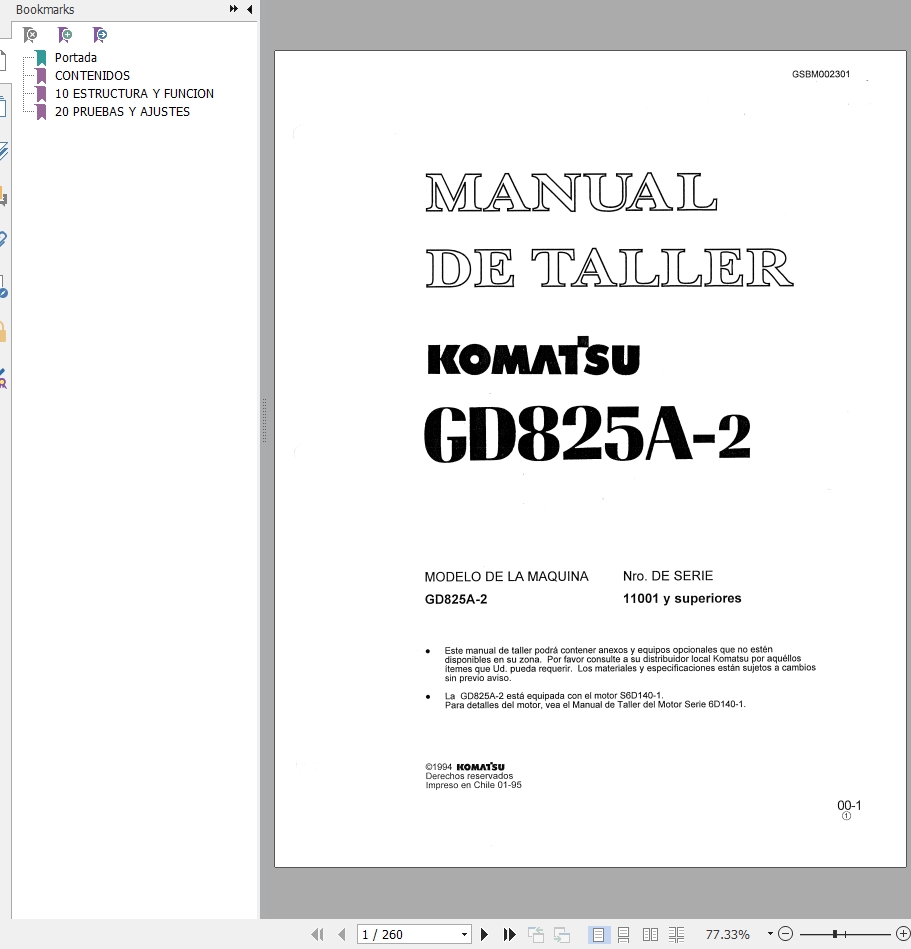 The Bookmarks of Komatsu GD825A-2 Motoniveladoras Manual de Taller: