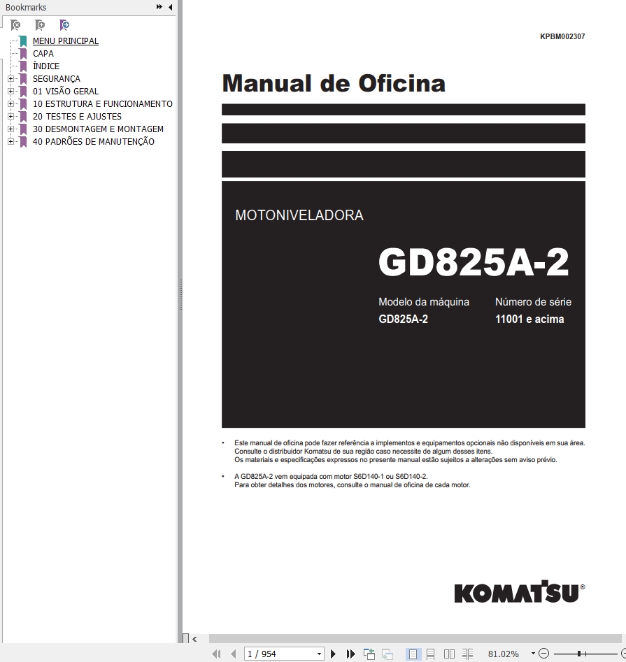 The Bookmarks of Komatsu GD825A-2 Motoniveladora Manual de Oficina:
