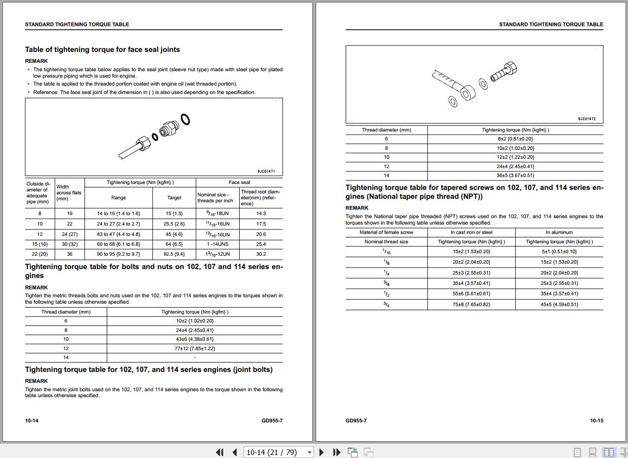 The Bookmarks of Komatsu GD955-7 Motor Grader Field Assembly Manual: