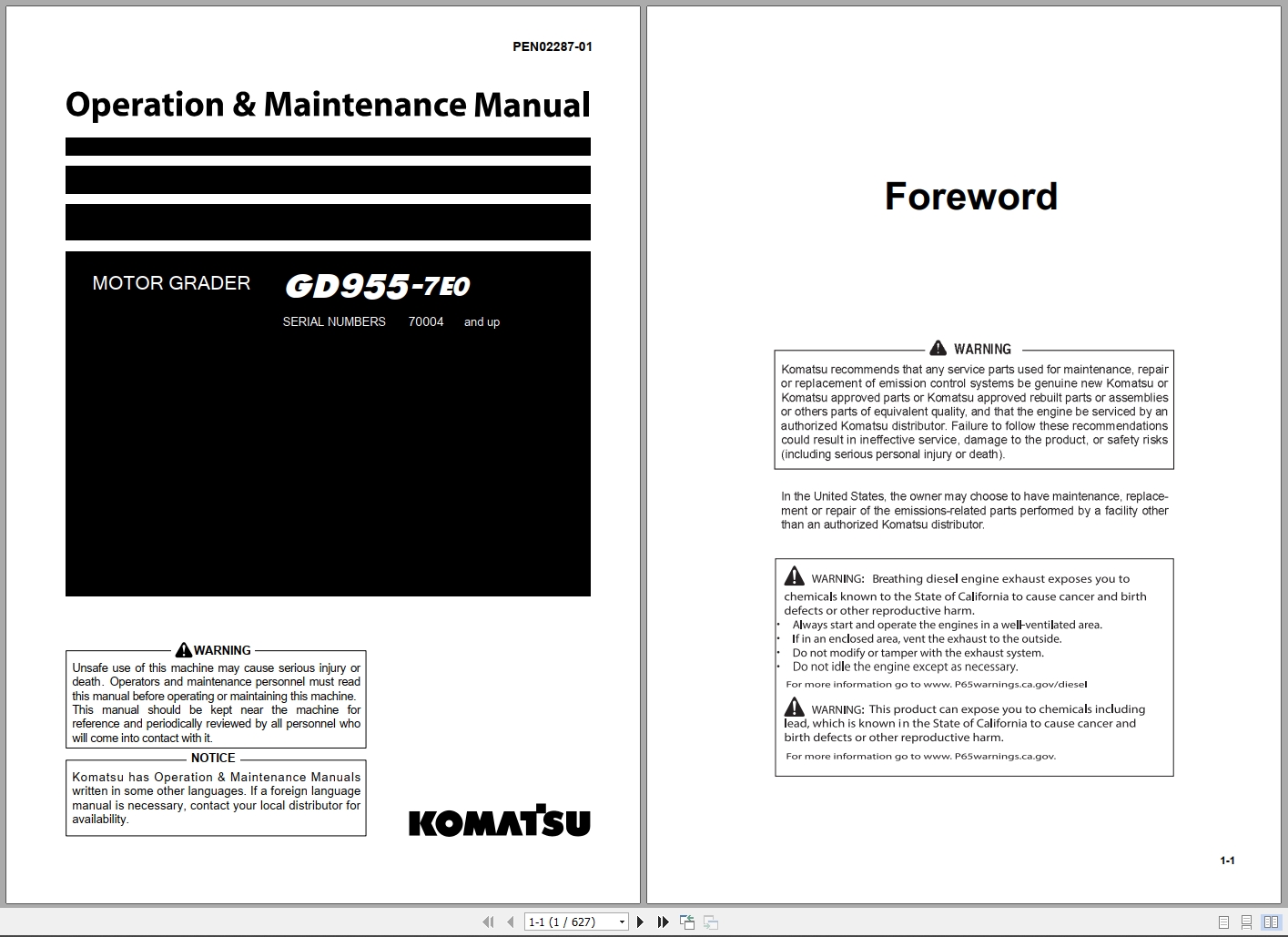 Komatsu GD955-7E0 Operation Maintenance Manual PEN02287-01