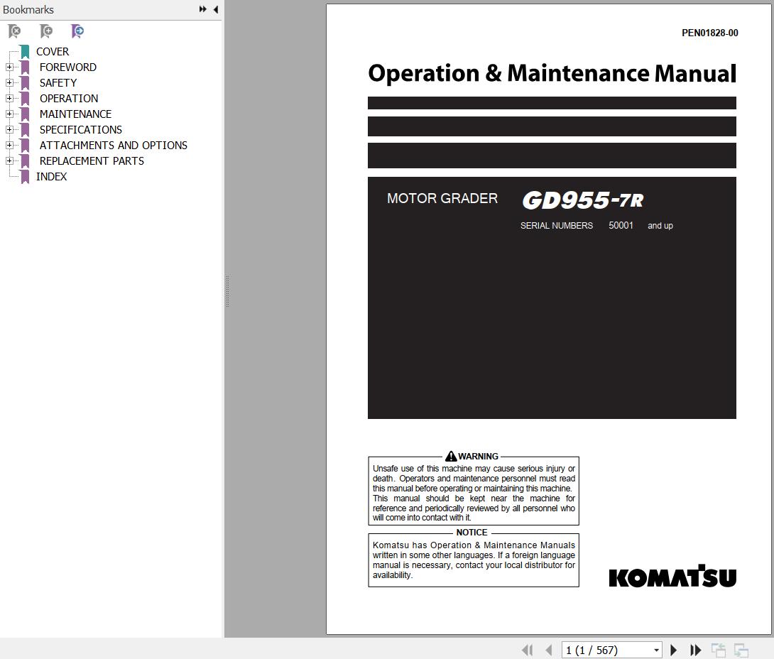 Komatsu GD955-7R Operation & Maintenance Manual PEN01828-00